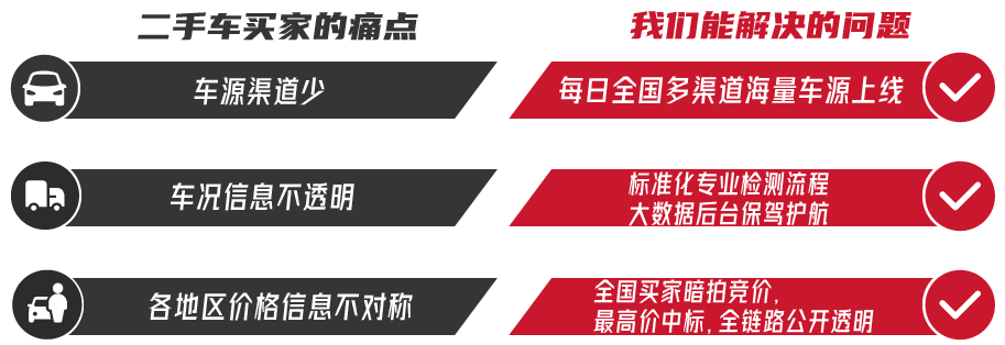 C2B模式:专注C2B赛道,解决C端快速卖车、无纠纷卖车等问题。
